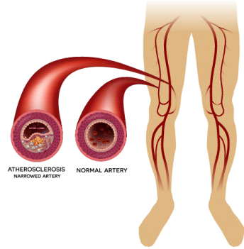 • Atherosclerosis (the hardening of arteries from plaque building up inside them, limiting blood flow)